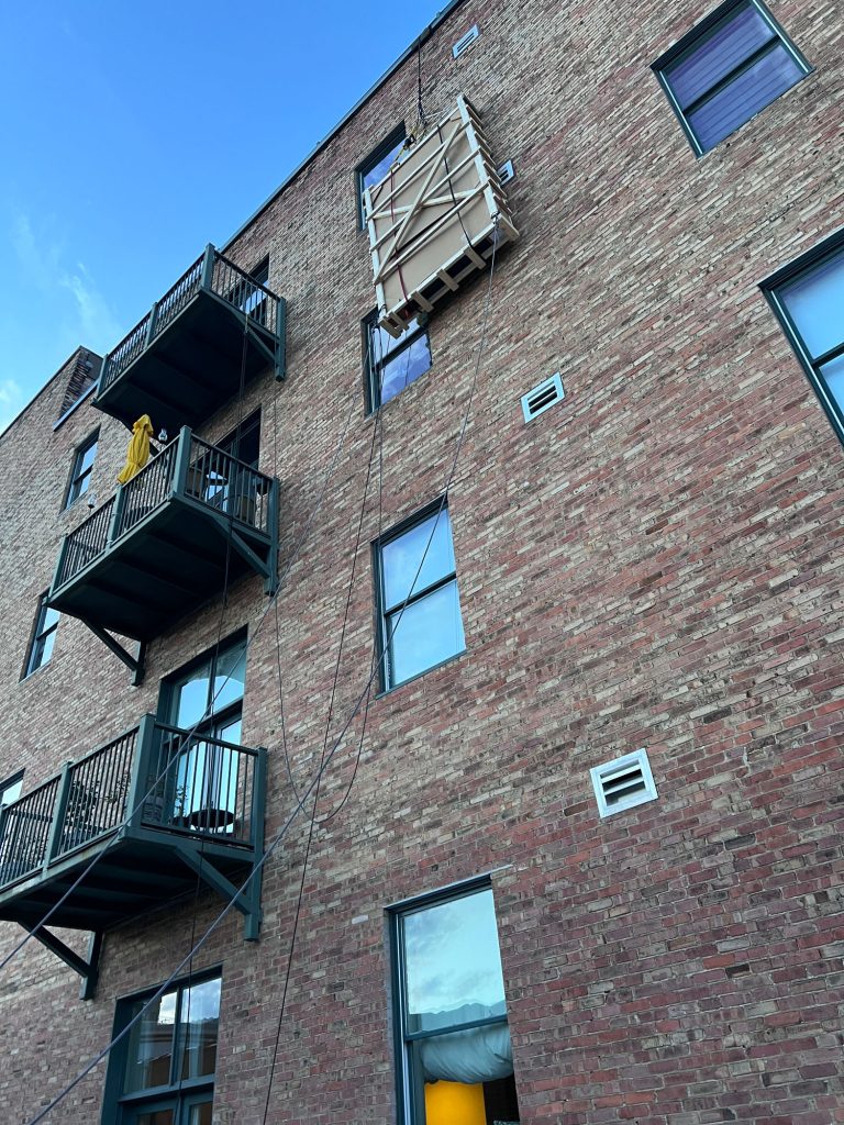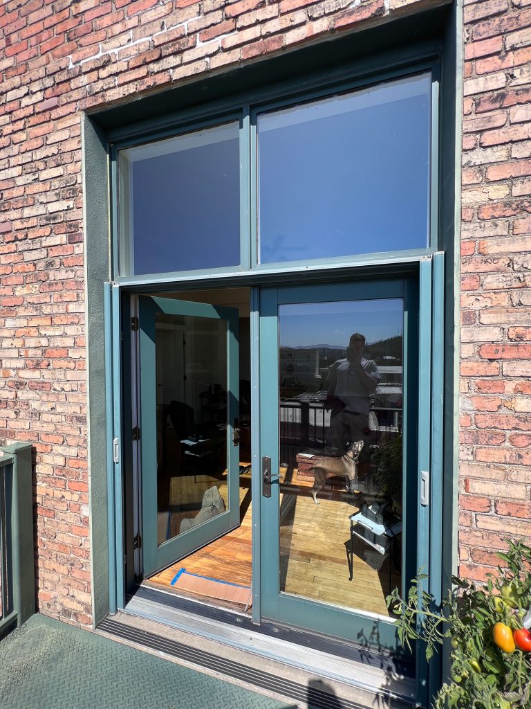 Our collaboration with the Historical Society was instrumental in the project’s success. Together, we created plans to install a replacement patio door that met their requirements and a strategy to lift the door, as a crane was not a viable option due to the steep roads and limited access. Vertical Access Professionals worked with our team to lift the new door 100ft into the air and into its new home.