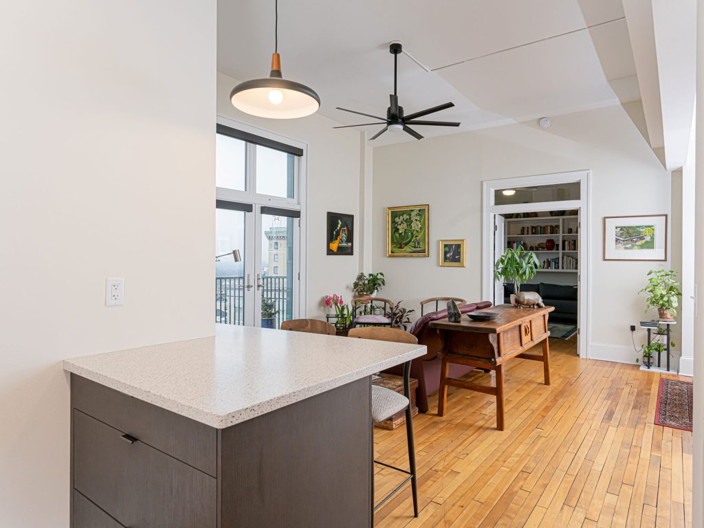 Our repeat clients embarked on a challenging journey with us, taking on a dated condo that had been poorly maintained on the top floor of Old Penney’s building. From the failing historical patio door to the clunky bathrooms, wasted space, and the kitchen that was difficult to navigate, we faced numerous hurdles that we successfully overcame with skilled teamwork and a keen eye for detail.