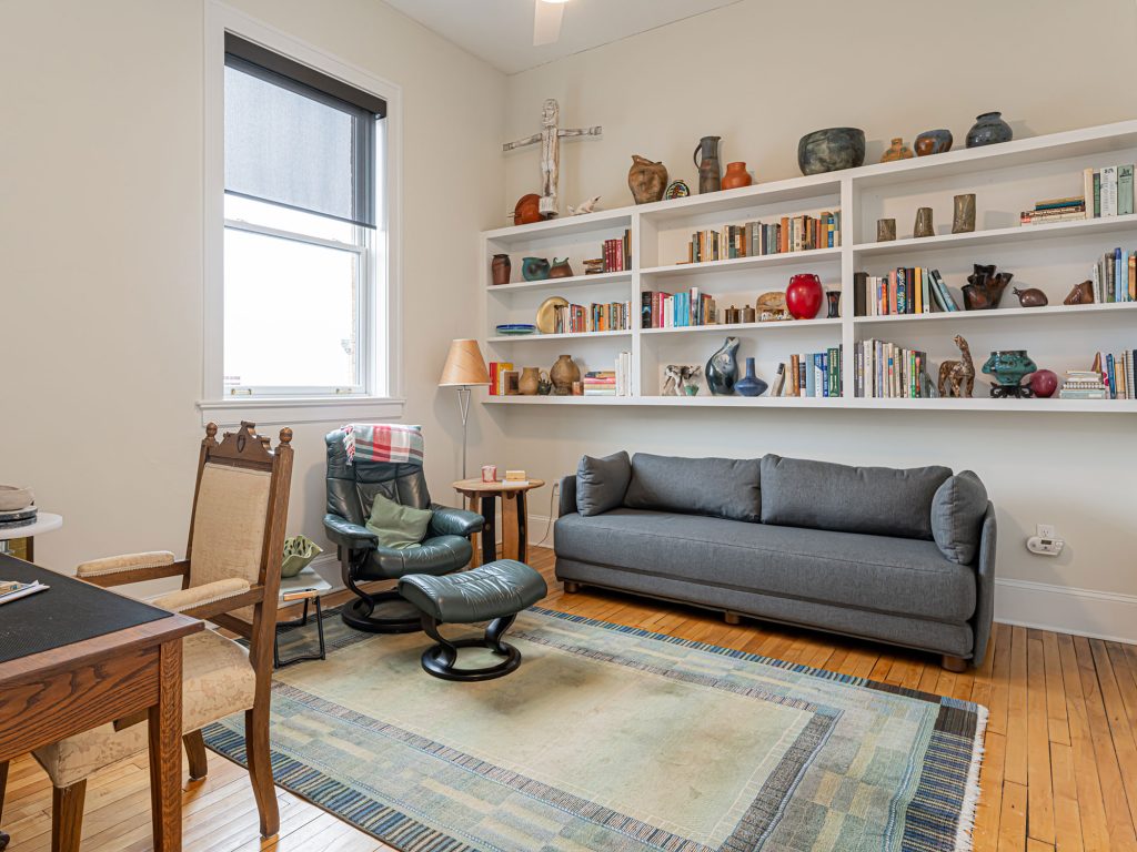 A new shelf, designed by the client and constructed off-site by our team, was a significant addition to the space. We carefully noted the client’s design and space considerations, ensuring the shelf was not only functional but also a stylish addition to house her books and art collection.
