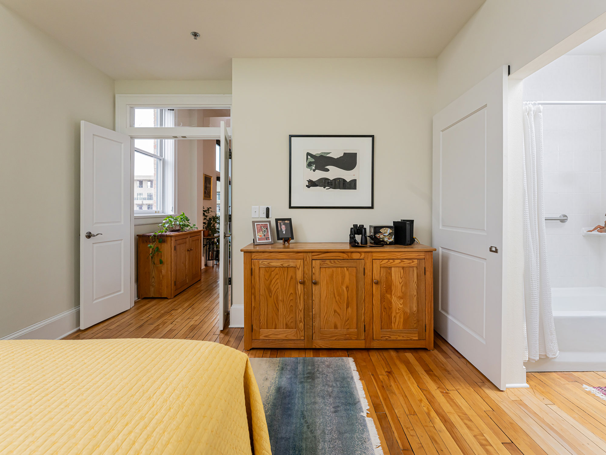 Our repeat clients embarked on a challenging journey with us, taking on a dated condo that had been poorly maintained on the top floor of Old Penney’s building. From the failing historical patio door to the clunky bathrooms, wasted space, and the kitchen that was difficult to navigate, we faced numerous hurdles that we successfully overcame with skilled teamwork and a keen eye for detail.