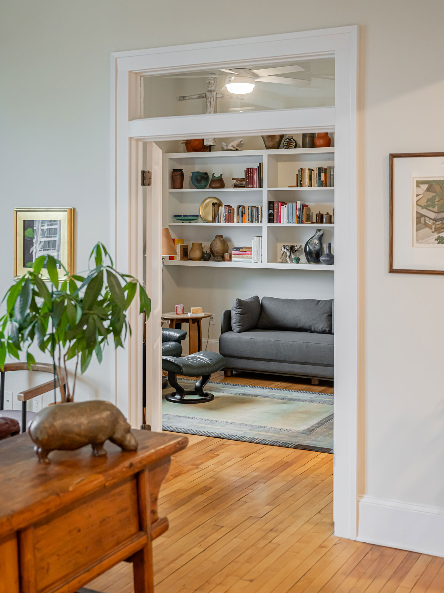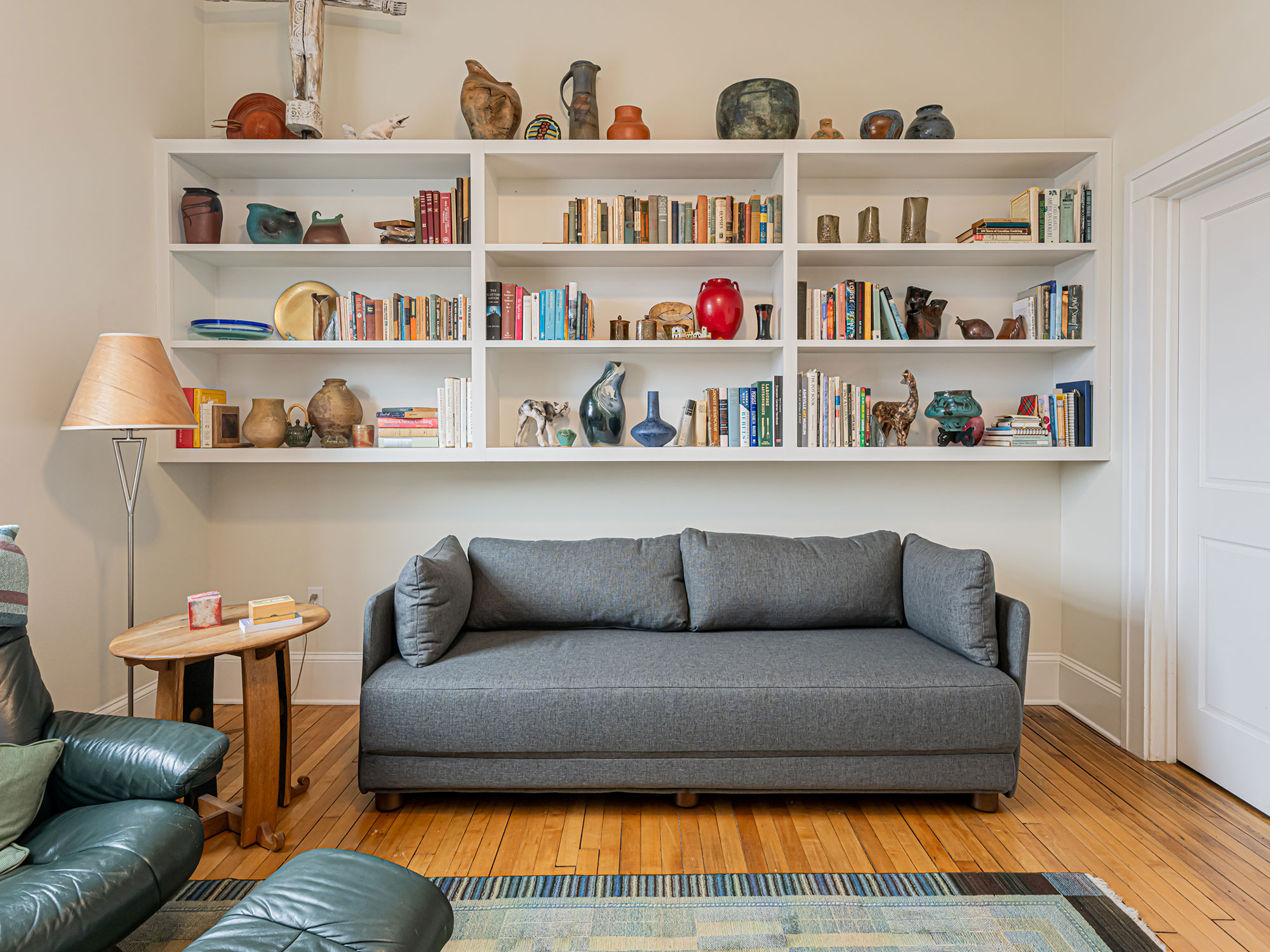 A new shelf, designed by the client and constructed off-site by our team, was a significant addition to the space. We carefully noted the client’s design and space considerations, ensuring the shelf was not only functional but also a stylish addition to house her books and art collection.