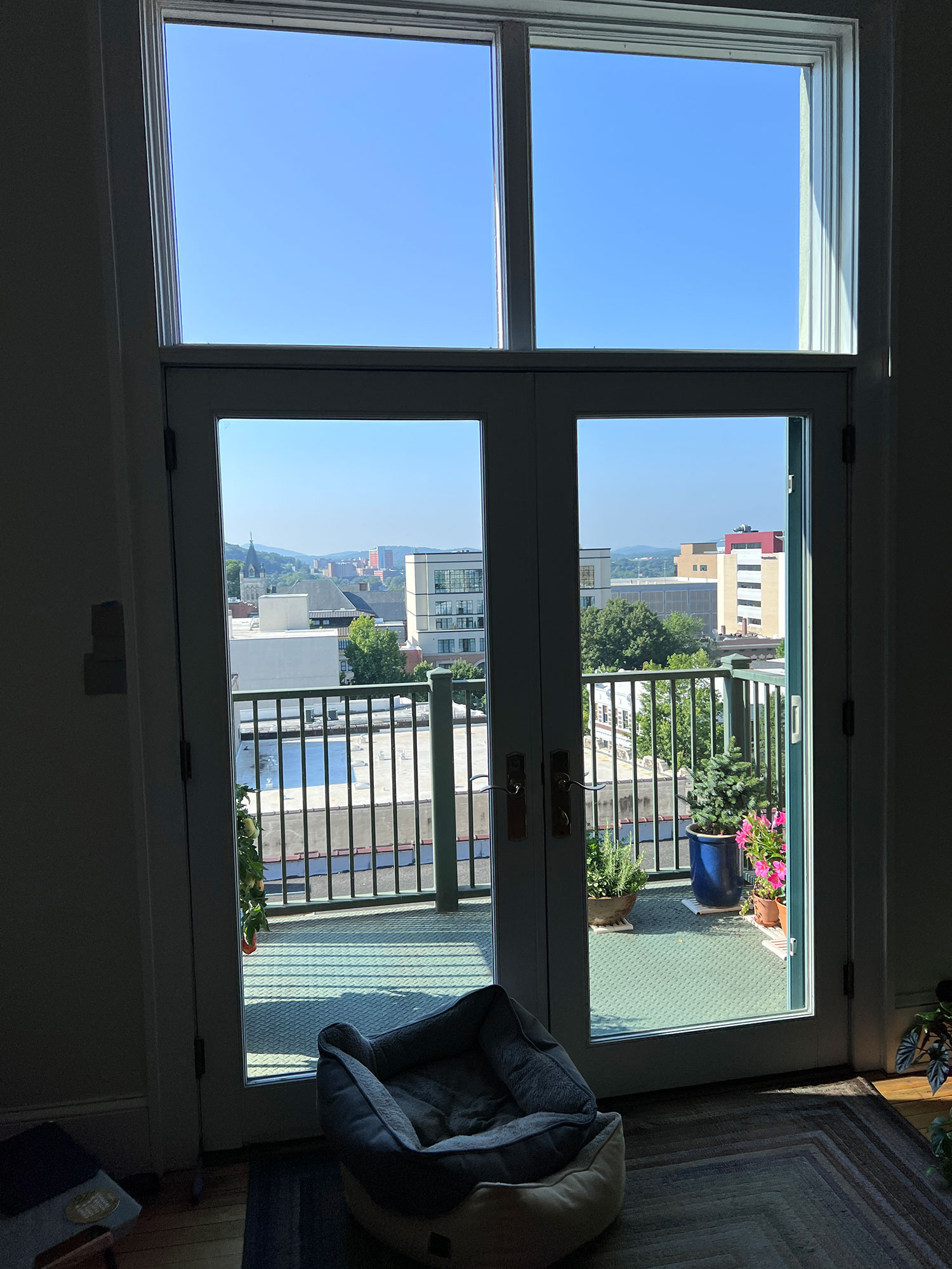 Our collaboration with the Historical Society was instrumental in the project’s success. Together, we created plans to install a replacement patio door that met their requirements and a strategy to lift the door, as a crane was not a viable option due to the steep roads and limited access. Vertical Access Professionals worked with our team to lift the new door 100ft into the air and into its new home.