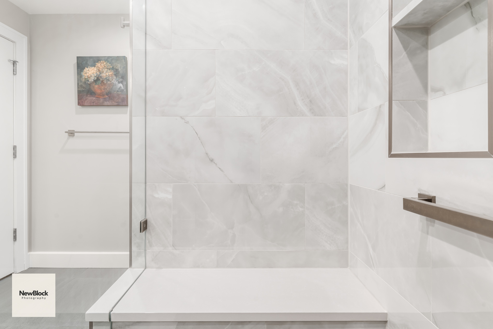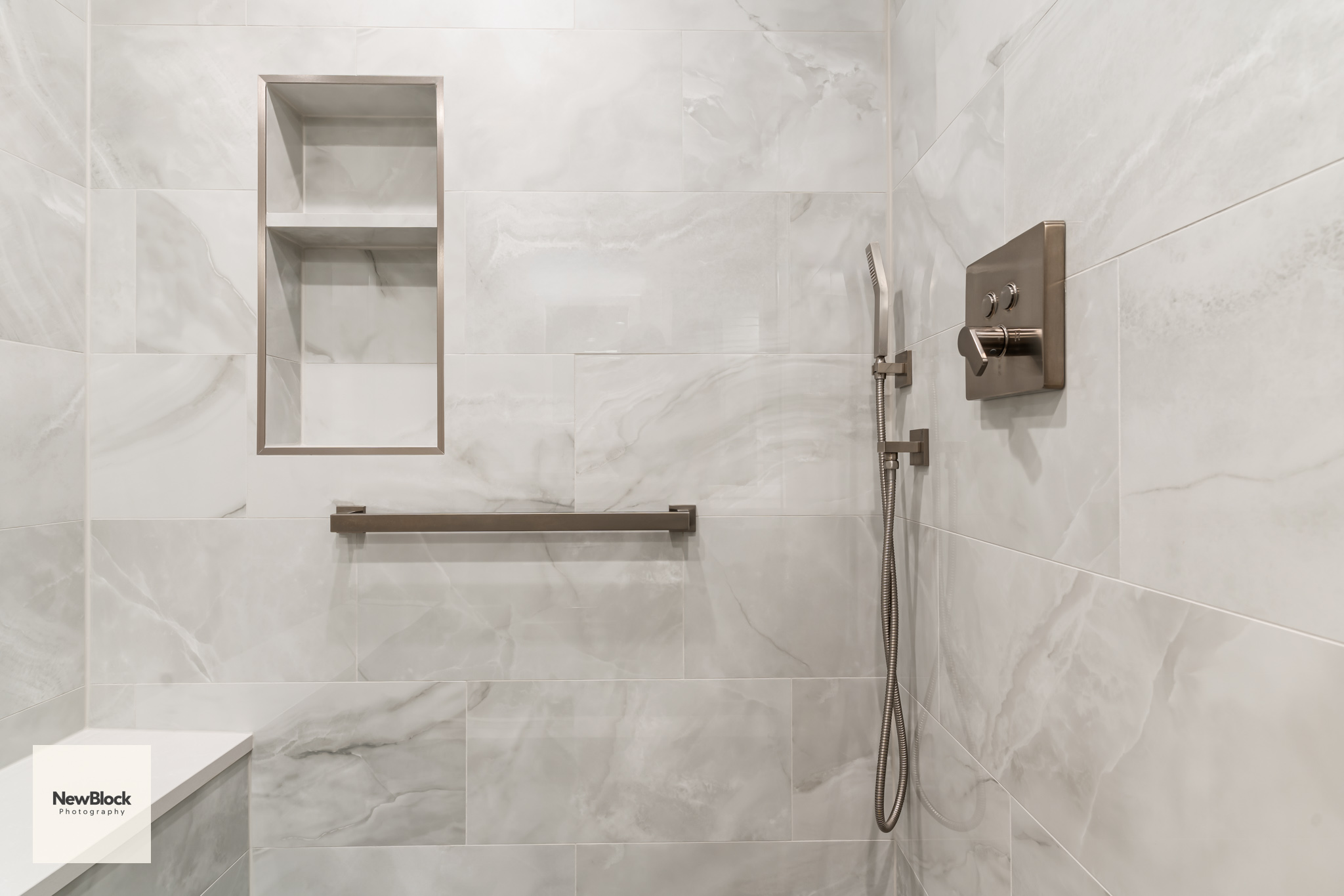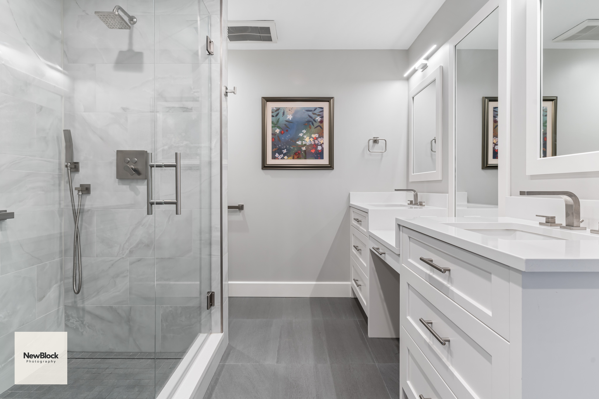 Some really like brown tile, some need a shower and a tub. They did not, and wanted more storage and a beautiful shower. Having a makeup vanity had always been a dream of theirs. Together, we transformed their primary bathroom into an elegant and functional space.